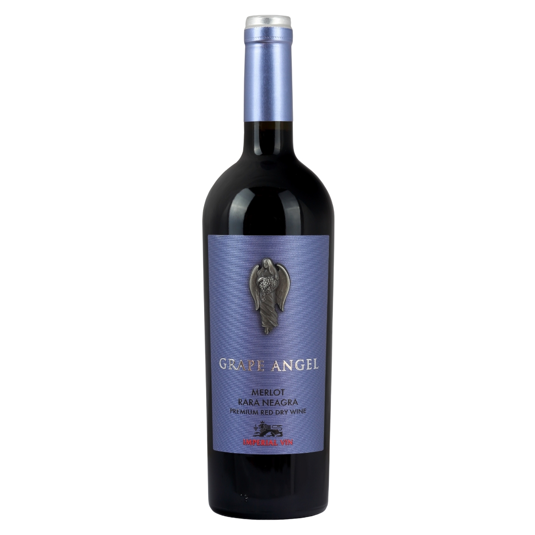 Com destaque para o rótulo em 3D com a figura de um anjo segurando um cacho de uvas. Grape Angel Premium Merlot & Rara Neagra 2019 é um vinho elaborado com as uvas Merlot e Rara Neagra (esta última, a uva tinta emblemática da Moldávia), na proporção de 70/30 com estágio de 6 meses em barricas de carvalho francês.
